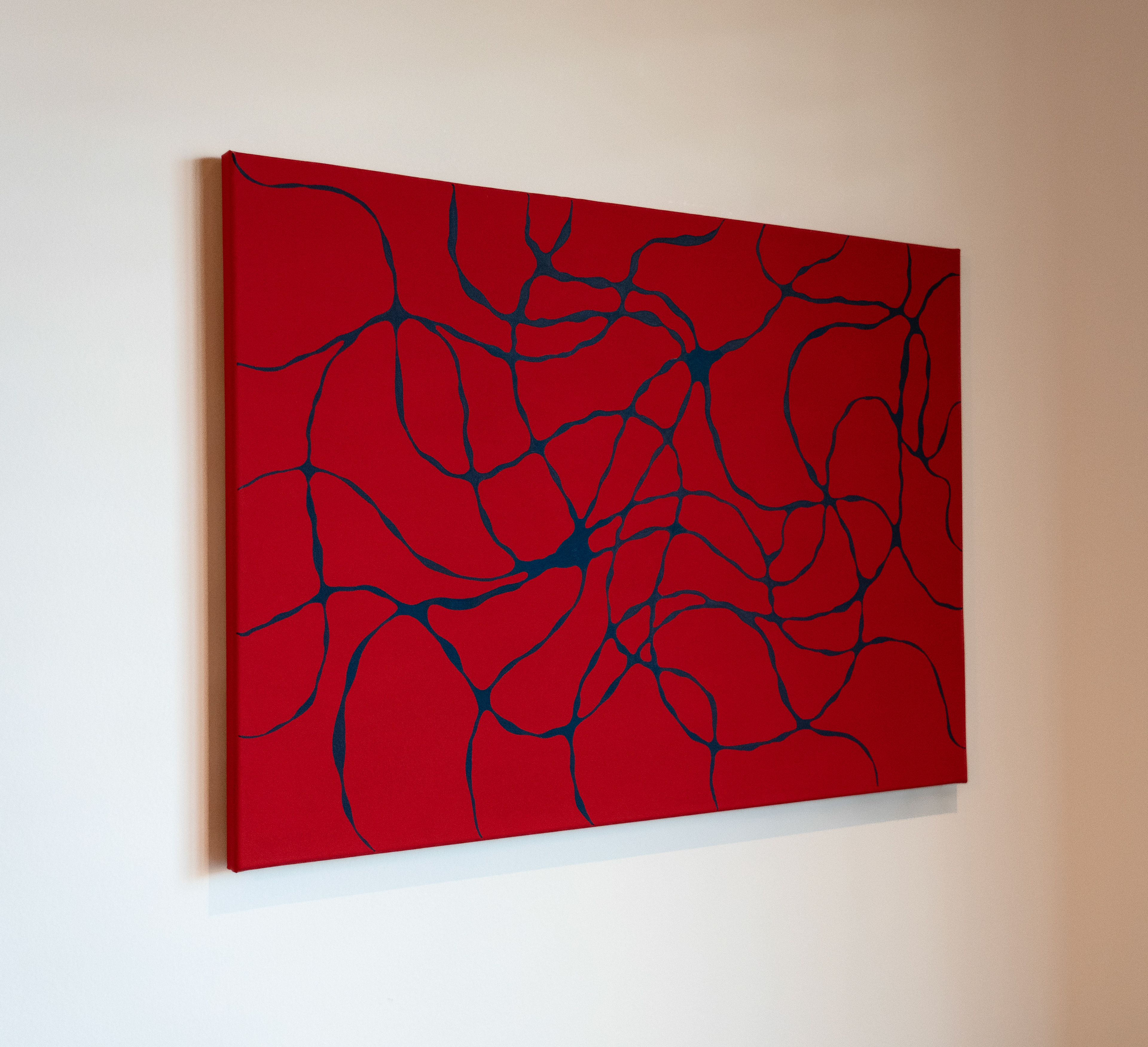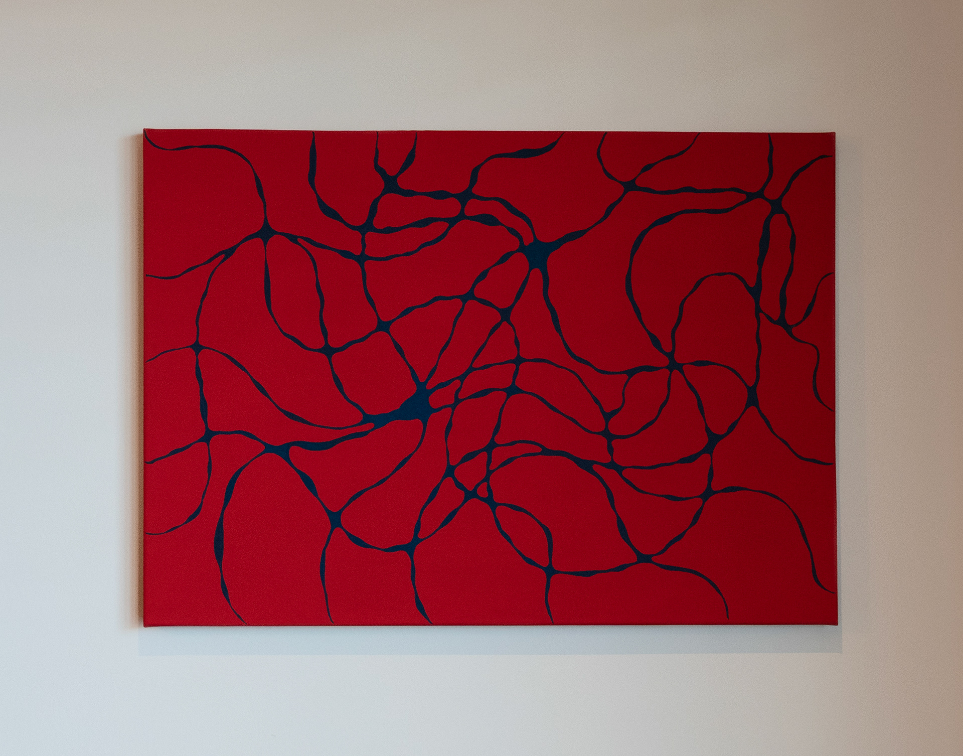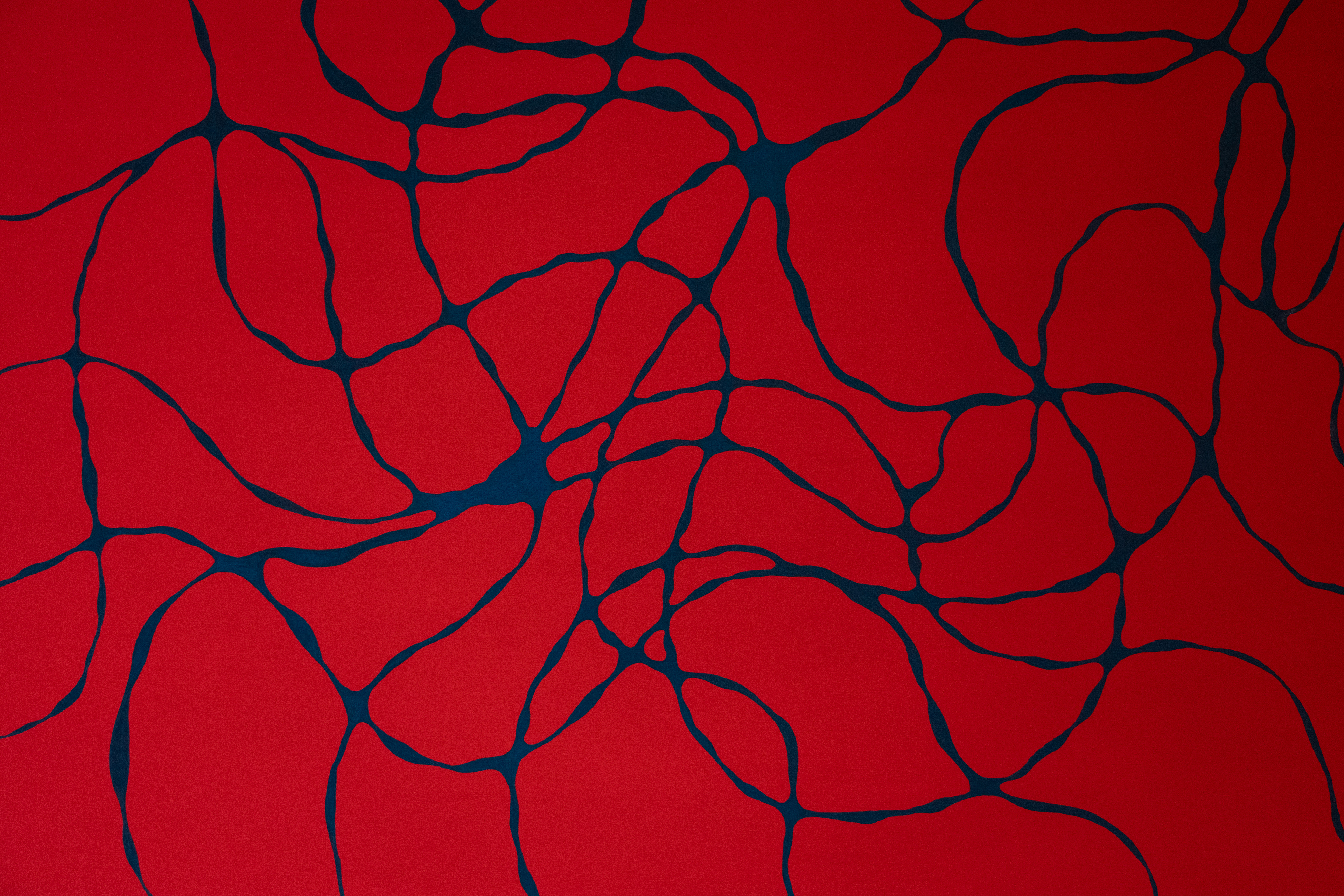 Medium: Fluorescent red acrylic gouache on canvas with midnight blue neurolines